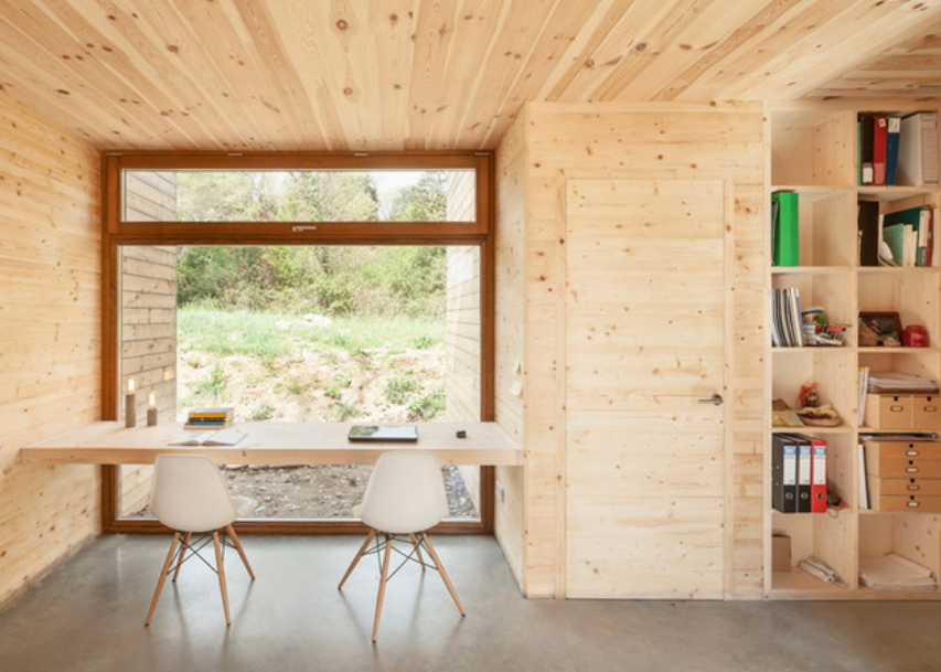 콘크리트 바닥을 제외하고 내부와 외부에 쓰일 마감재로 목재를 고르는 것은 작업자의 화합을 더 간단하고 빠르게하고 전반적인 건설비용을 줄입니다.