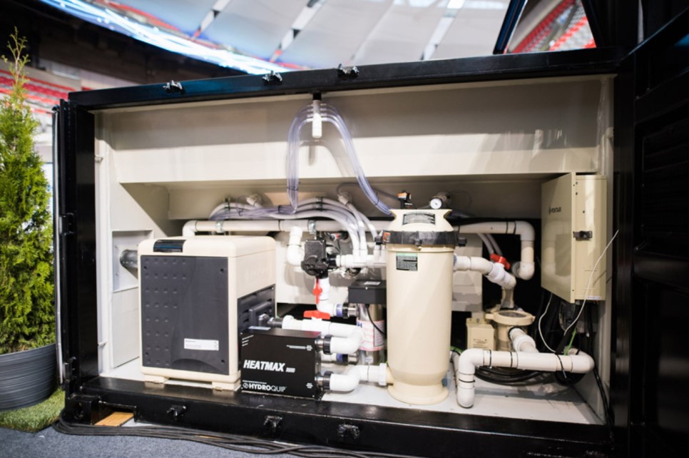 위생시설과 온수 시스템을 추가하고 색이 변하는 LED조명과 자쿠지를 설치합니다. 또한 자쿠지로부터 수영장을 분리할 수 있도록 견고한 내열성 플라스틱으로 만든