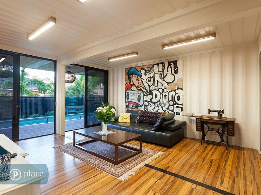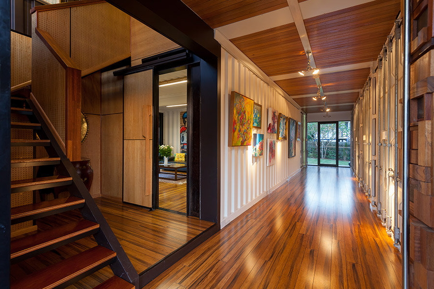 6,000평방피트에 3층인 이 주택은 31개의 20피트 컨테이너로 구성되었고 서재, 집사무실, 작업장, 운동공간, 수영장, 4개의 욕실과 4개의 침실이 포함되어있습니다.