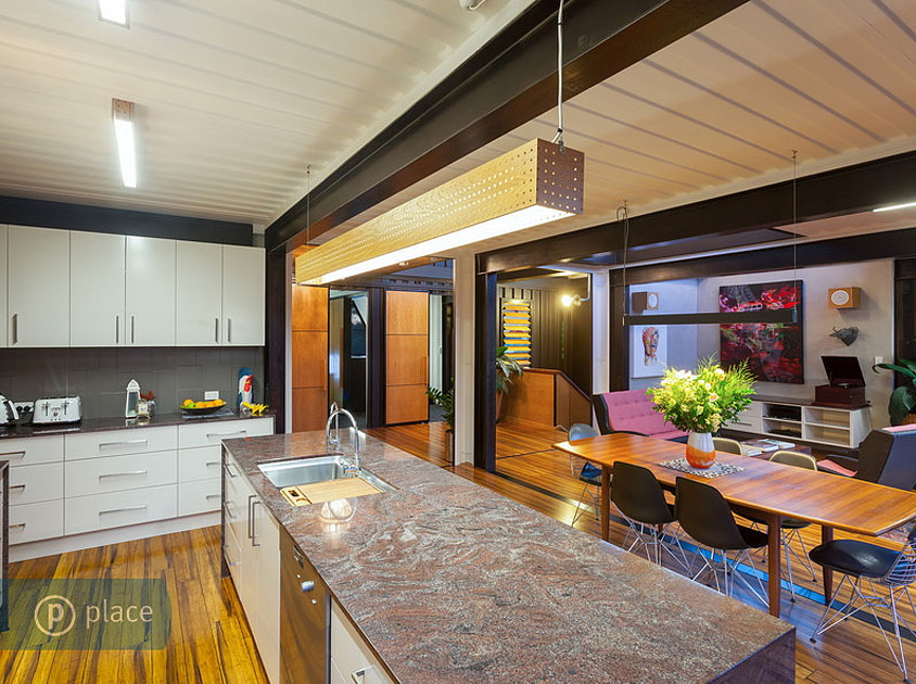 호주 브리스번에서 5마일 떨어진 곳에 위치한 이 주택은 Todd Miller of Ziegler Build에서 건설되었습니다.