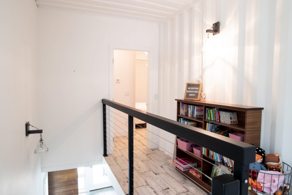 보드와 목재 마감등의 별도 외장 마감 없이 고유한 컨테이너의 모습으로 끝이납니다.