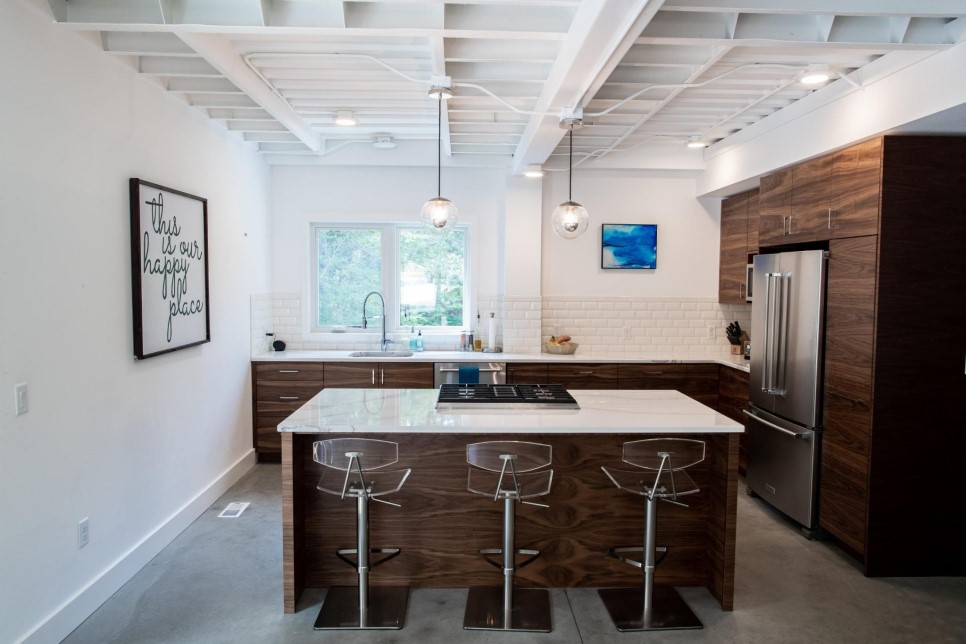 1층 바닥은 전체적으로 난방시스템을 적용하였고 연마된 콘크리트 바닥입니다.