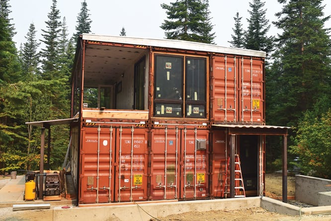 그래서 그들은 그 아이디어를 확장시켰고 Wenatchee 호수 근처에 있는 2.5에이커 규모의 작은 집을 컨테이너 6개의 구조로 성장시켰습니다.