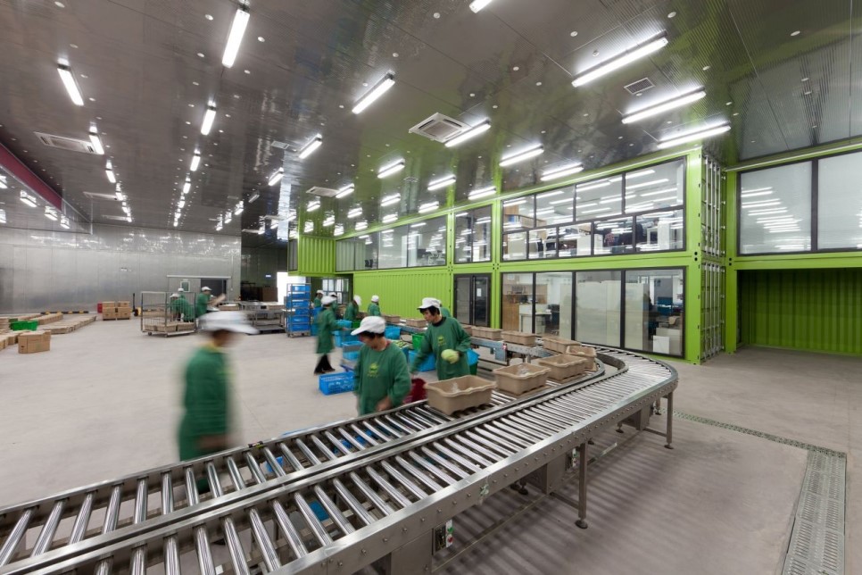 새로운 사무실과 과일, 채소를 포장하는 기존 창고를 발전시켰습니다. 건물은 제조공정 내에서 투명성을 제공합니다.